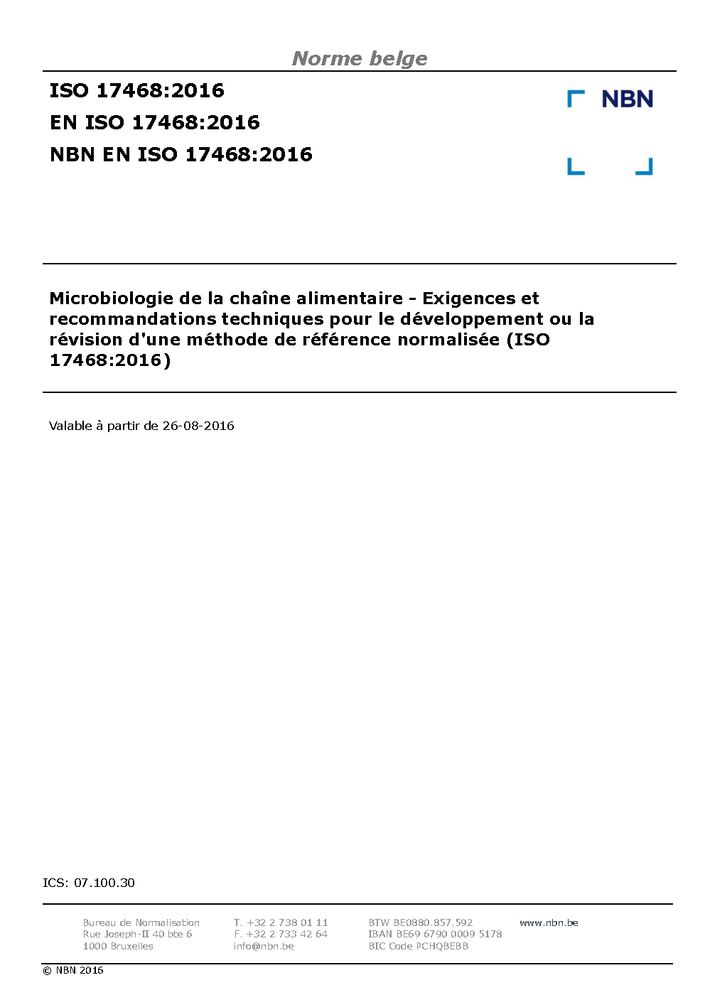 | Publisher | Bureau de Normalisation Belge (NBN) |