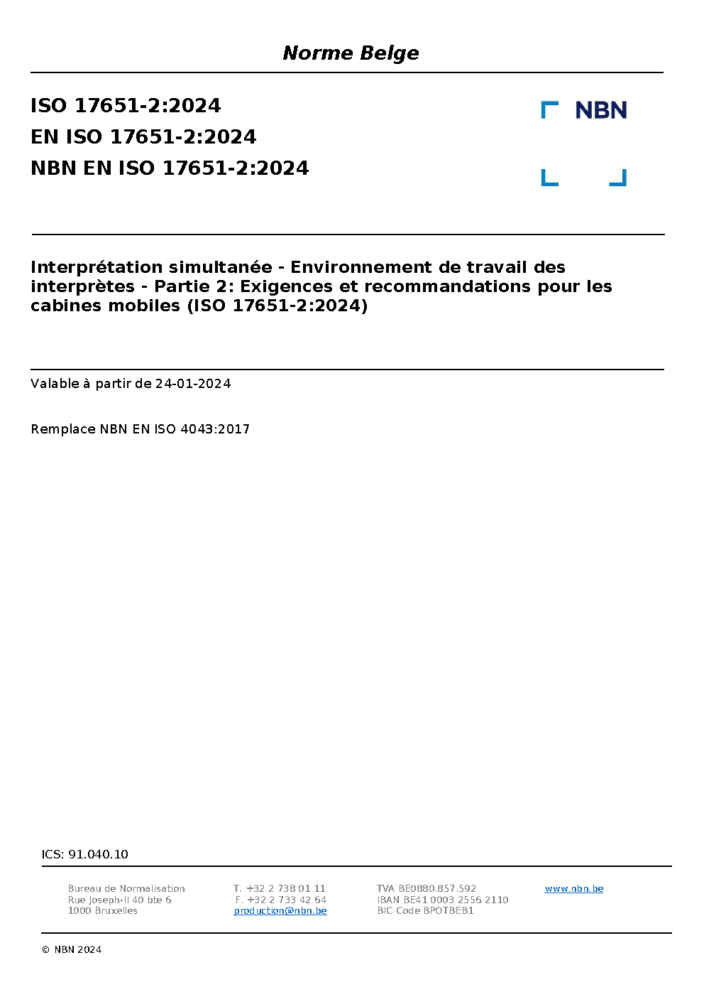Simultaneous interpreting - Interpreters’ working environment - Part 2: Requirements and recommendations for mobile booths (ISO 17651-2:2024)