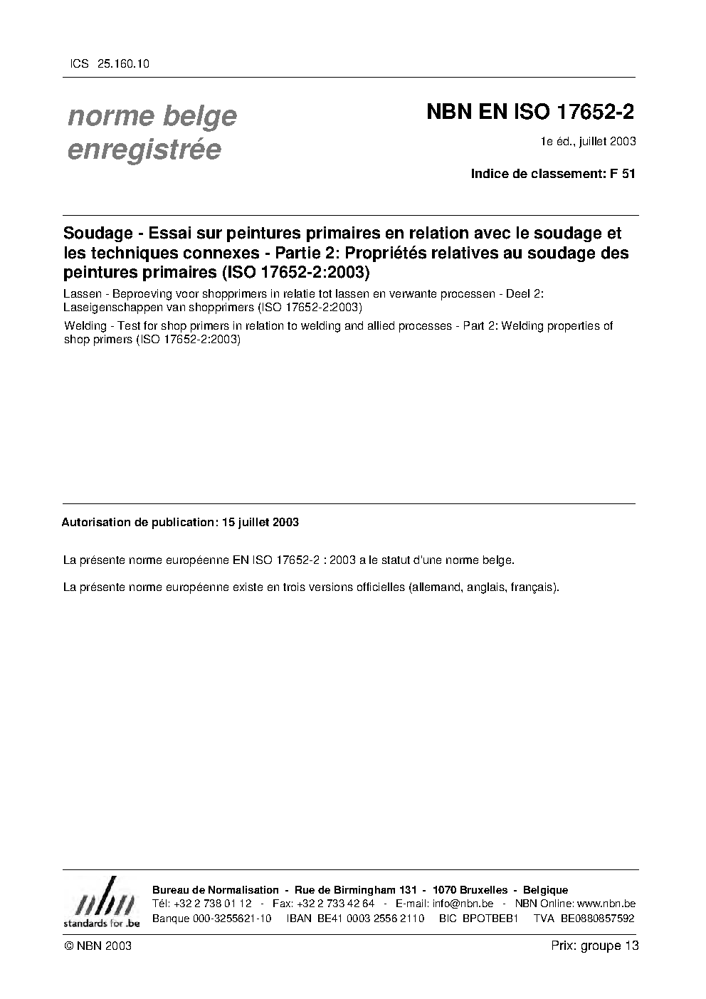 | Publisher | Bureau de Normalisation Belge (NBN) |