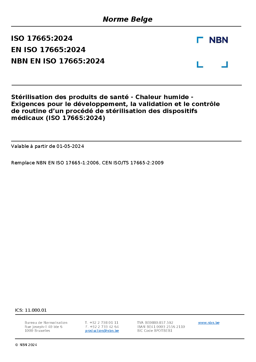 NBN EN ISO 17665:2024