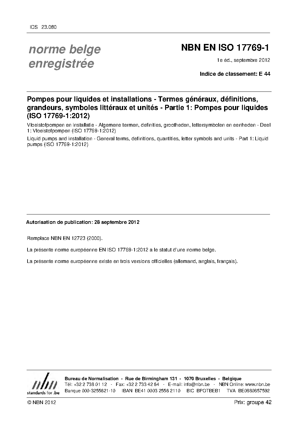 | Publisher | Bureau de Normalisation Belge (NBN) |
