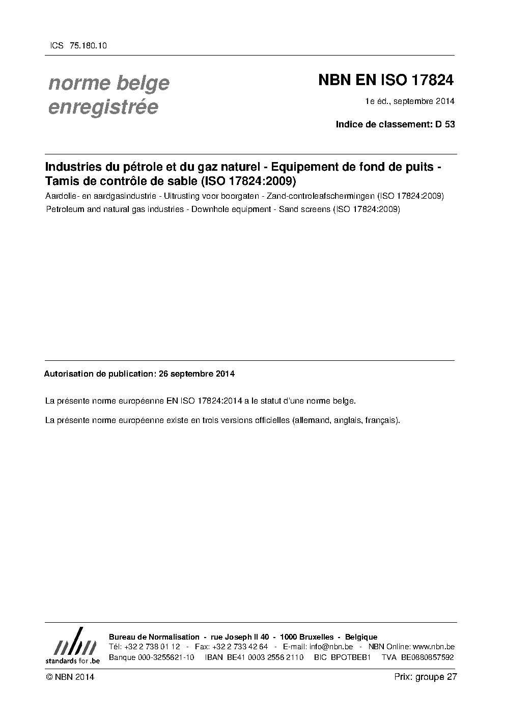 | Publisher | Bureau de Normalisation Belge (NBN) |