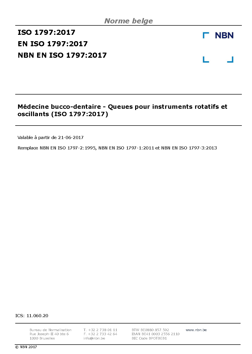 Dentistry - Shanks for rotary and oscillating instruments (ISO 1797:2017)