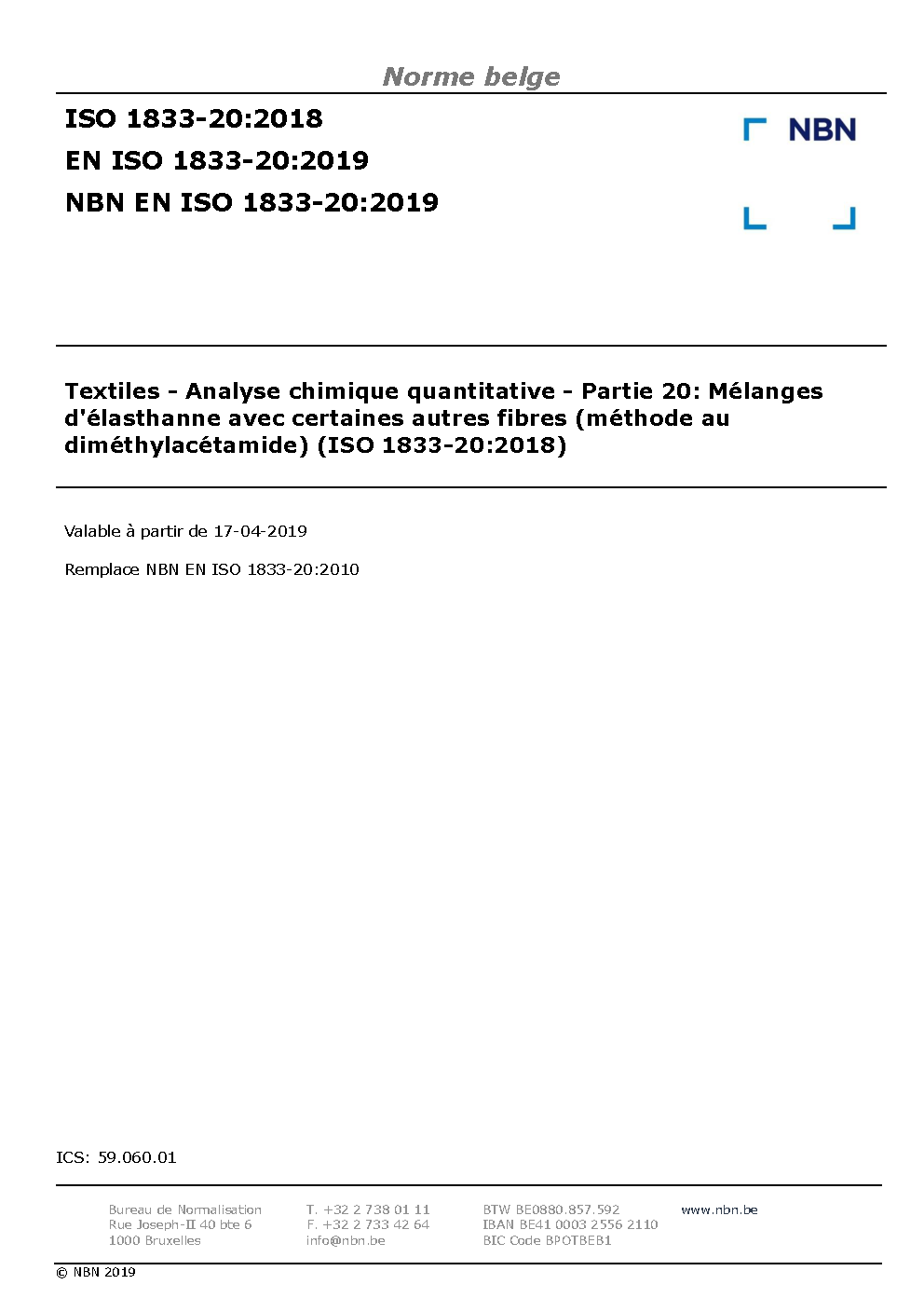NBN EN ISO 1833-20:2019