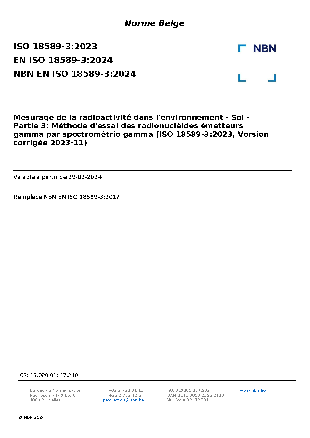 | Publisher | Bureau de Normalisation Belge (NBN) |
