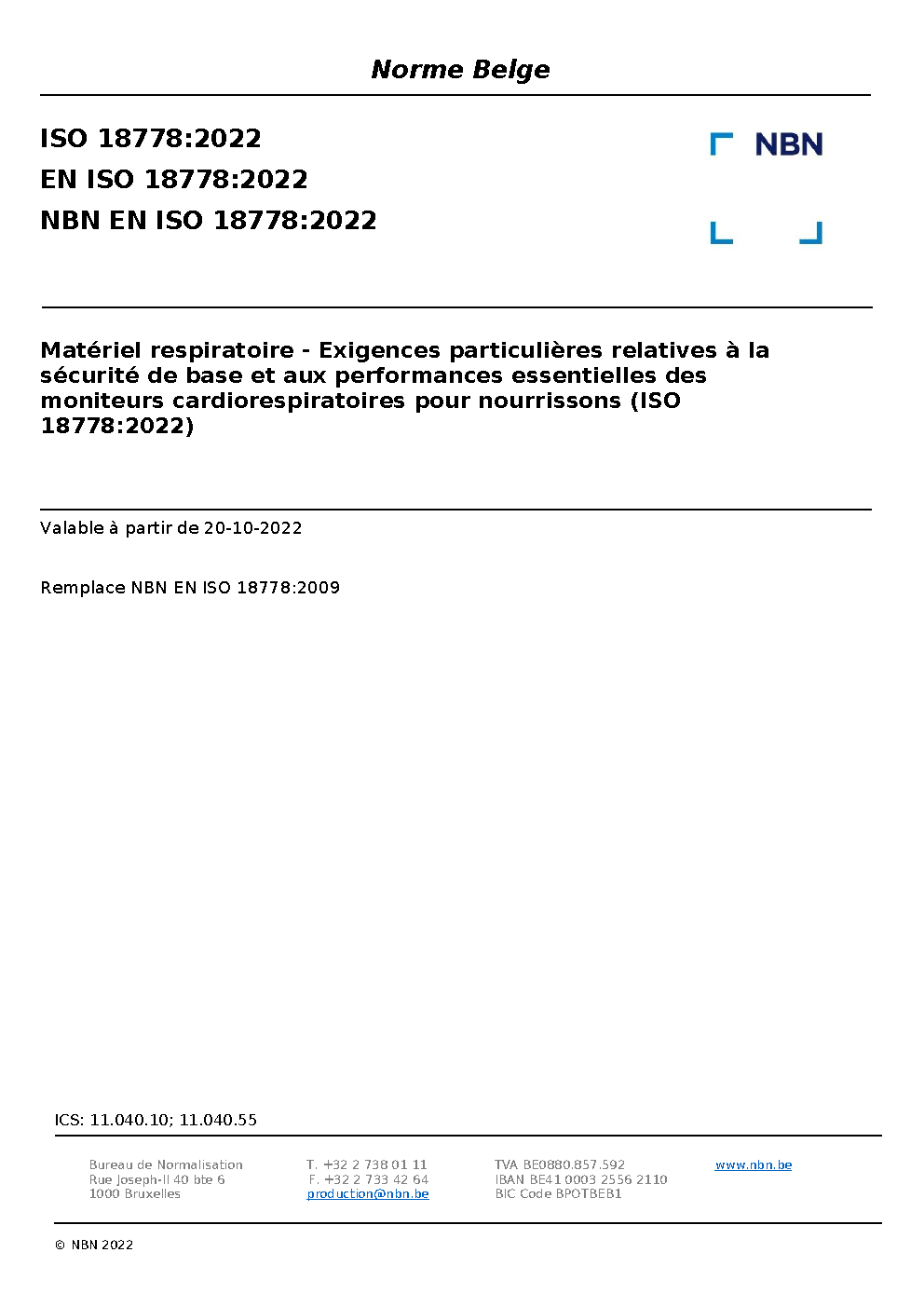 Respiratory equipment - Particular requirements for basic safety and essential performance of infant cardiorespiratory monitors (ISO 18778:2022)
