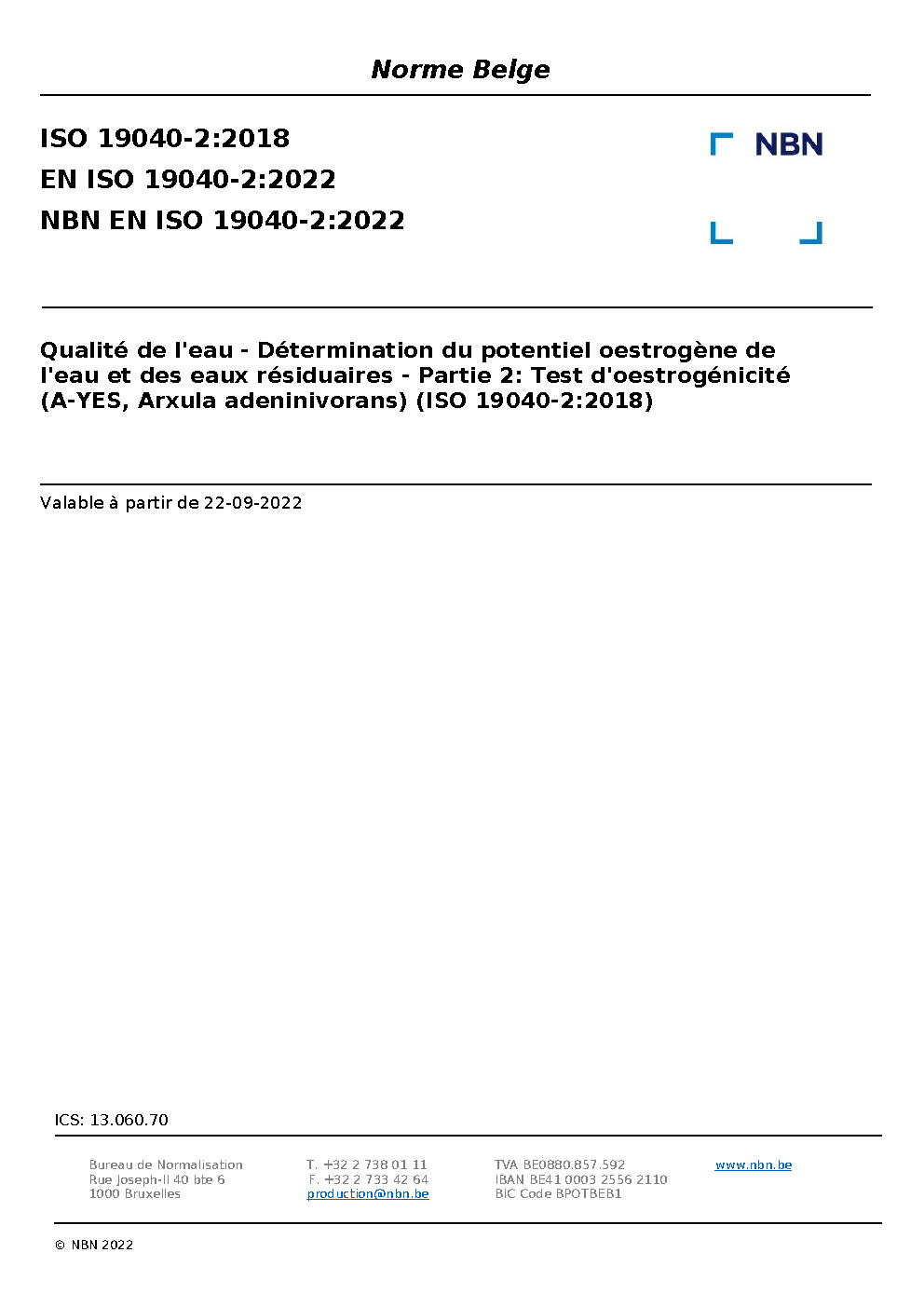 | Publisher | Bureau de Normalisation Belge (NBN) |
