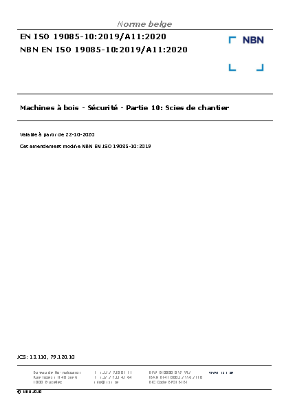 Woodworking machines - Safety - Part 10: Building site saws (contractor saws) (ISO 19085-10:2018, including Corrected version 2019-12)