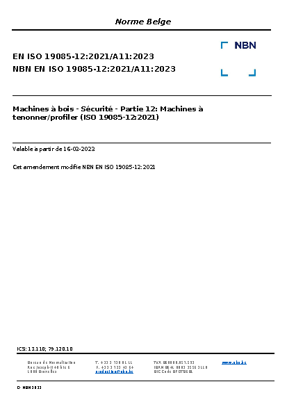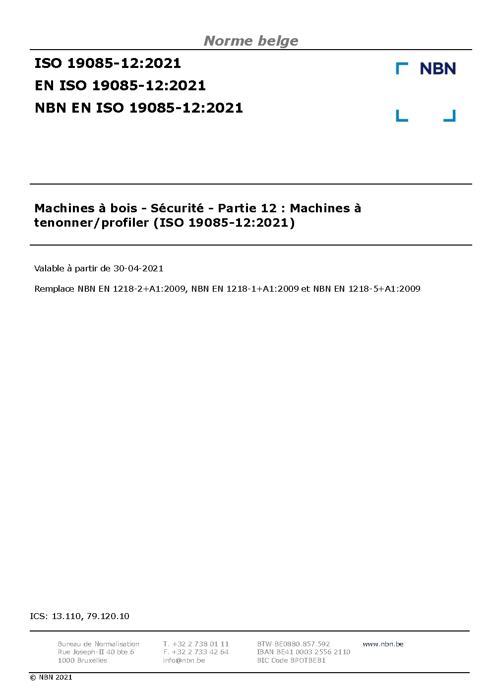 Woodworking machines - Safety - Part 12: Tenoning/profiling machines (ISO 19085-12:2021)