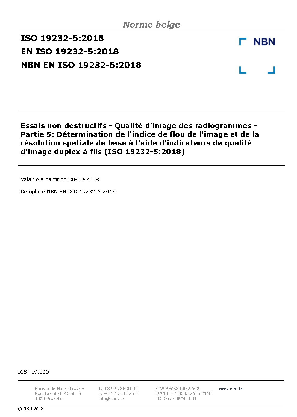 | Publisher | Bureau de Normalisation Belge (NBN) |