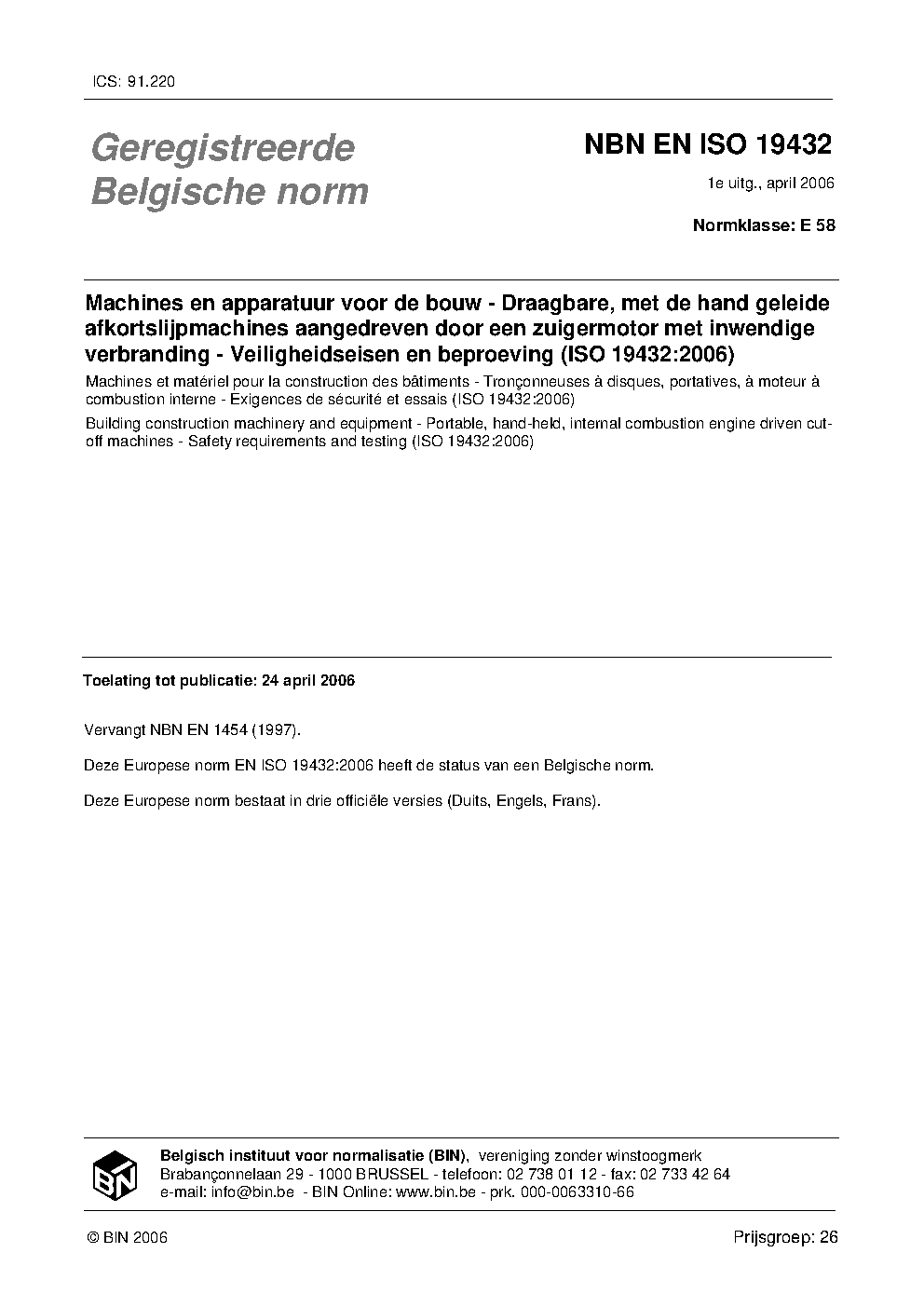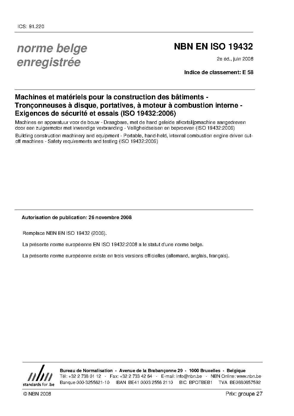 | Publisher | Bureau de Normalisation Belge (NBN) |