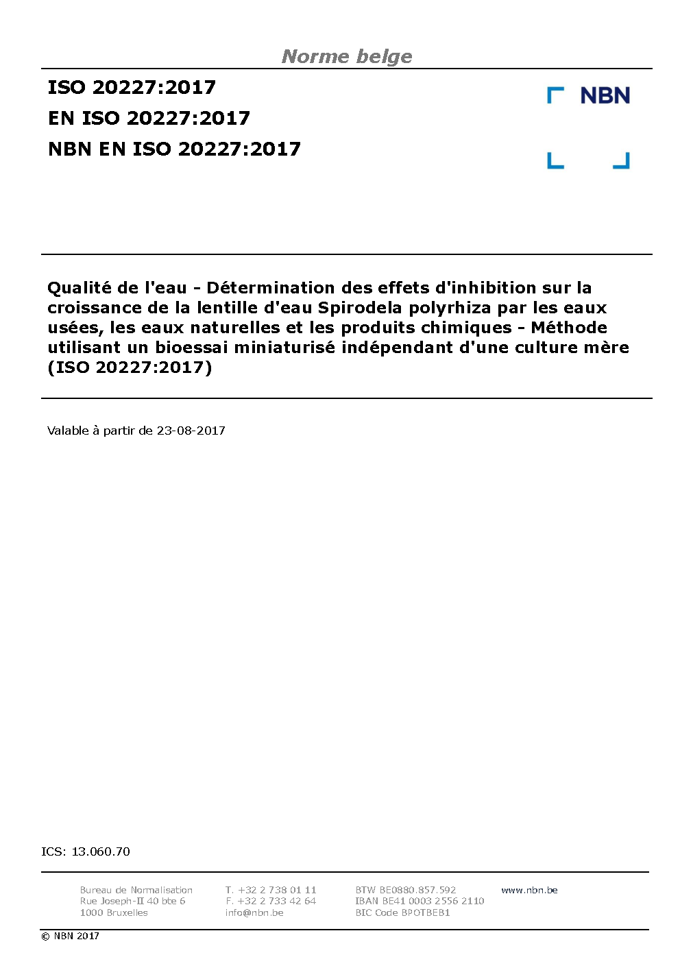 | Publisher | Bureau de Normalisation Belge (NBN) |