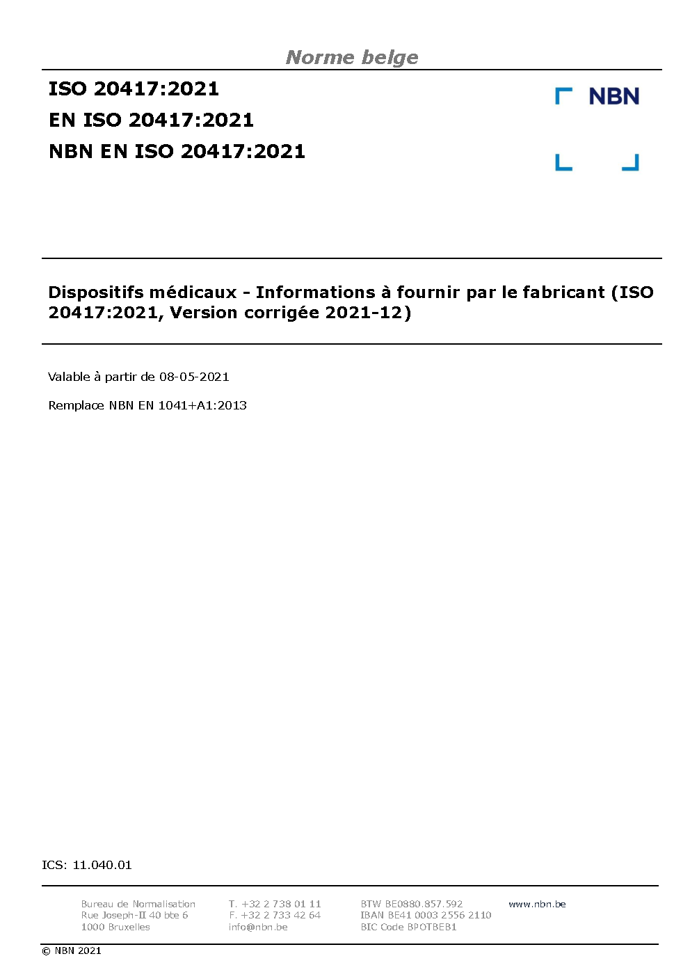 Medical devices - Information to be supplied by the manufacturer (ISO 20417:2021, Corrected version 2021-12)