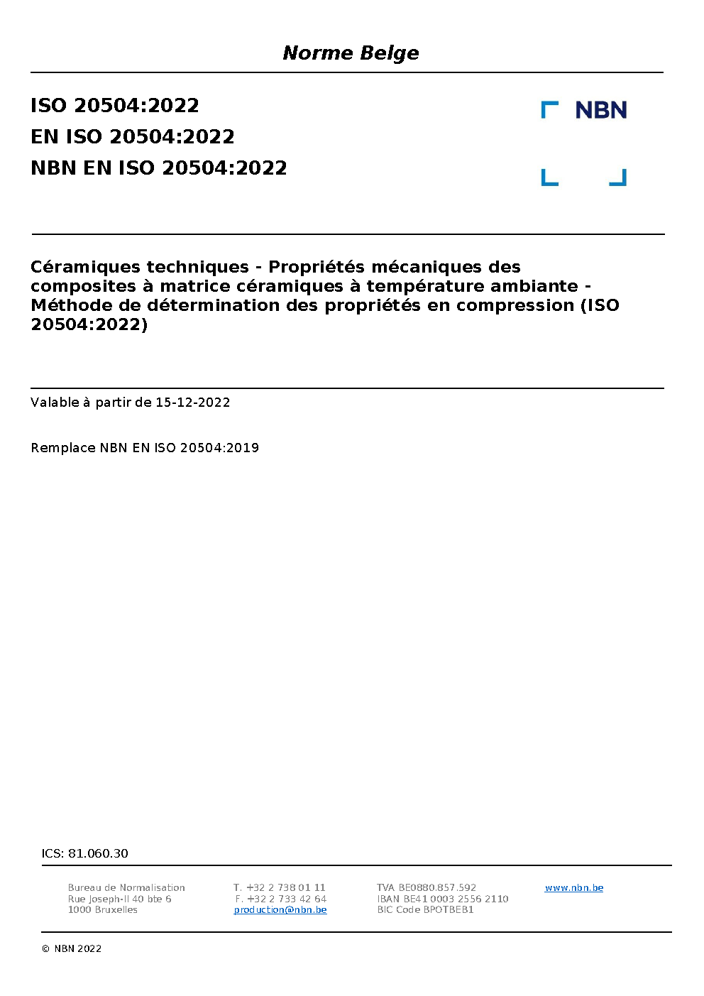 | Publisher | Bureau de Normalisation Belge (NBN) |