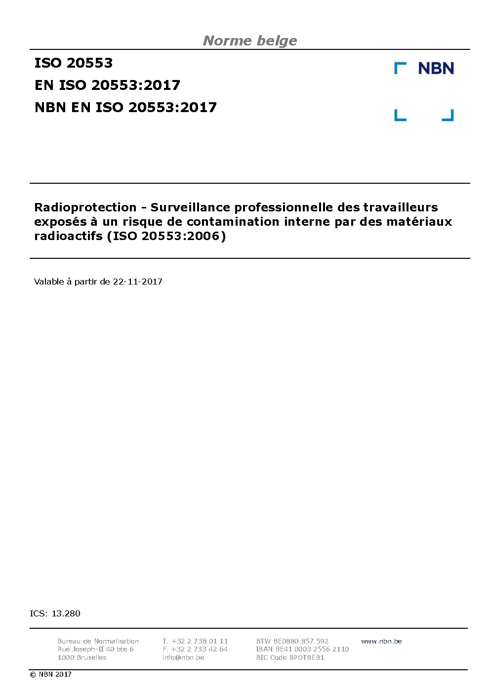 | Publisher | Bureau de Normalisation Belge (NBN) |