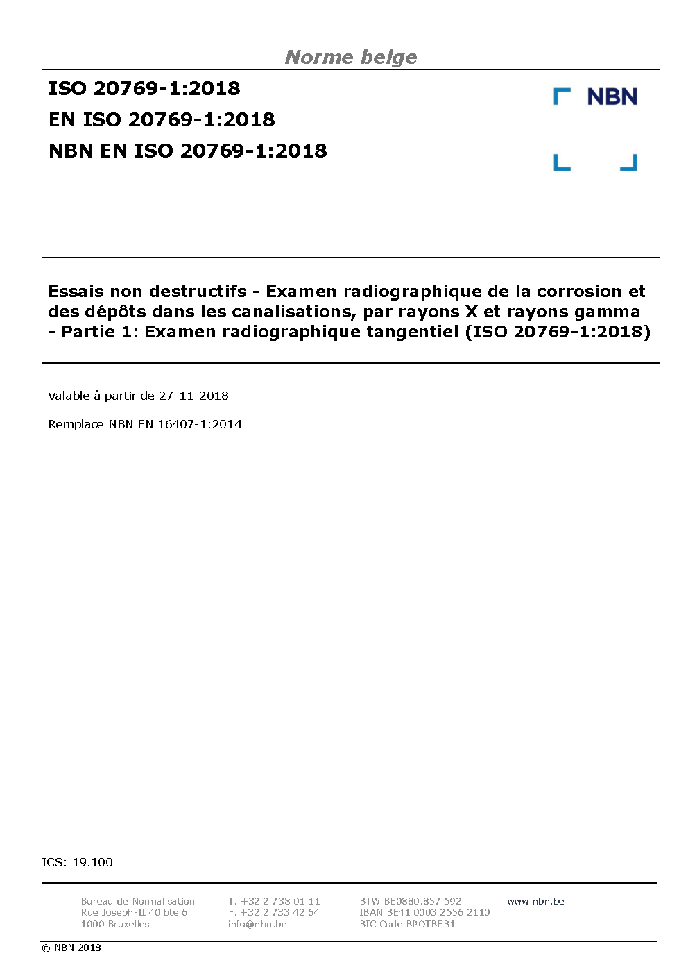 Non-destructive testing - Radiographic inspection of corrosion and deposits in pipes by X - and gamma rays - Part 1: Tangential radiographic inspection (ISO 20769-1:2018)