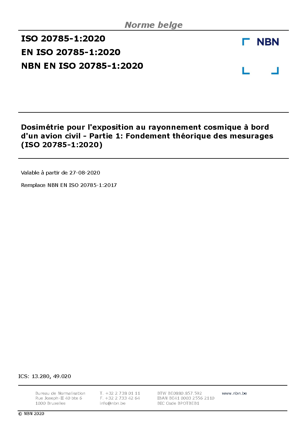 NBN EN ISO 20785-1:2020