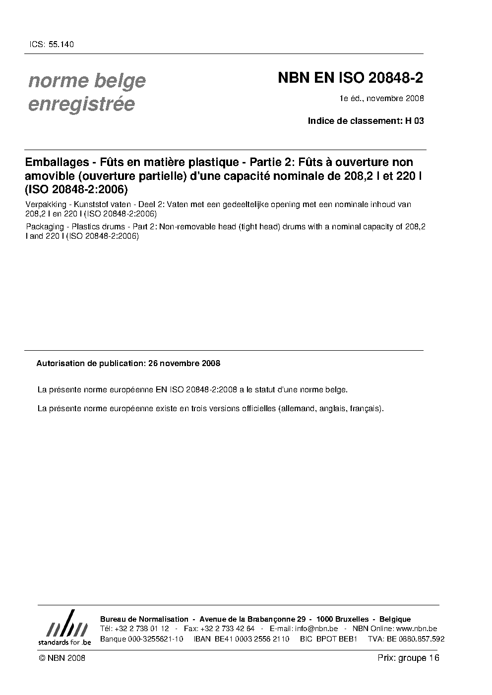 | Publisher | Bureau de Normalisation Belge (NBN) |