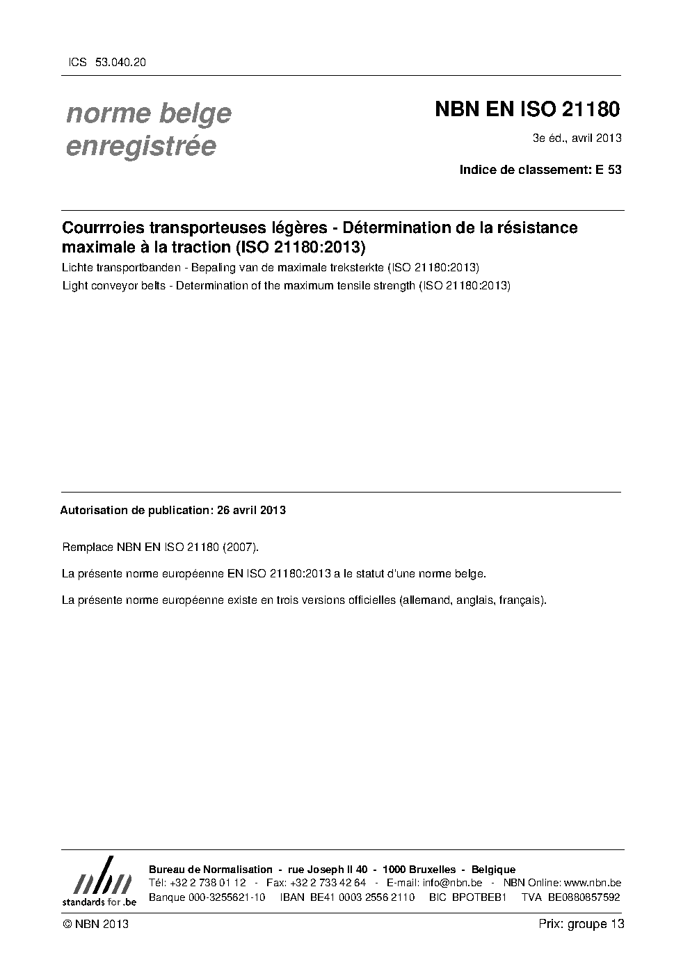 | Publisher | Bureau de Normalisation Belge (NBN) |