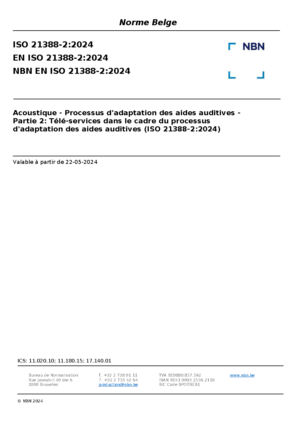 Acoustics - Hearing Aid Fitting Management - Part 2: Tele-services as part of hearing aid fitting management (tHAFM) (ISO 21388-2:2024)