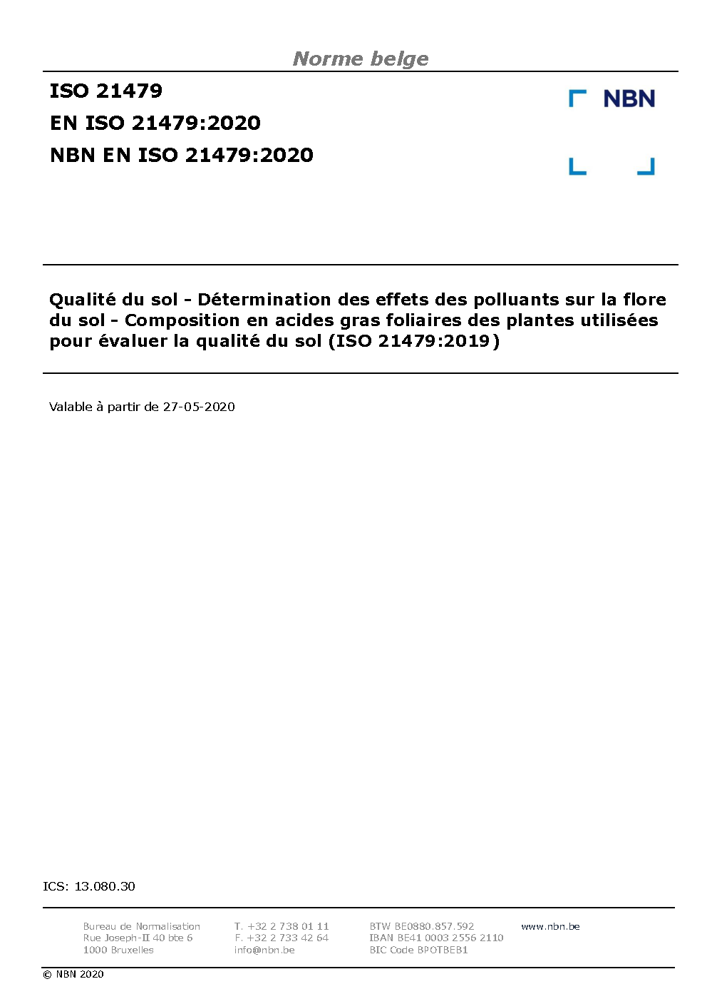 | Publisher | Bureau de Normalisation Belge (NBN) |