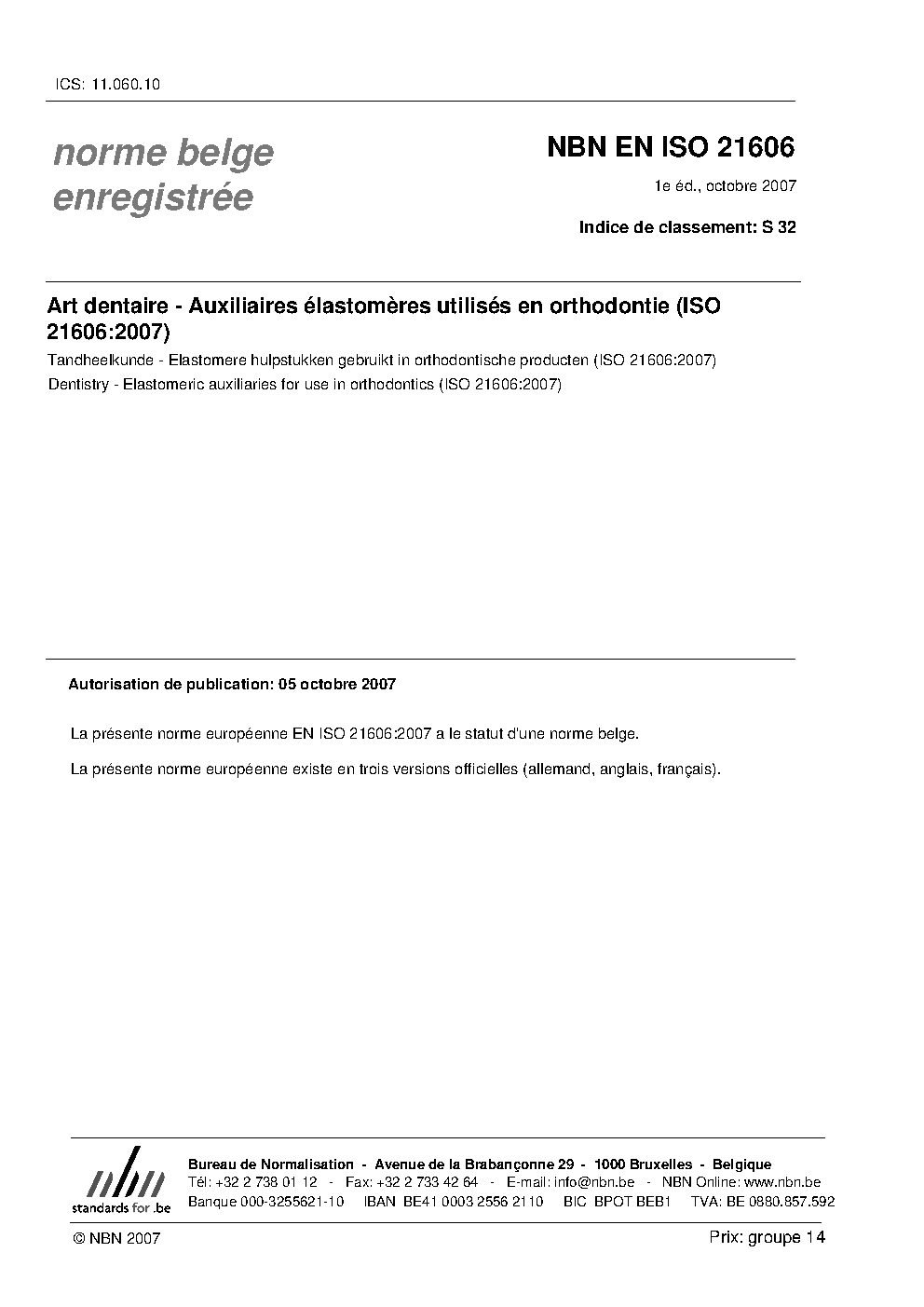 | Publisher | Bureau de Normalisation Belge (NBN) |