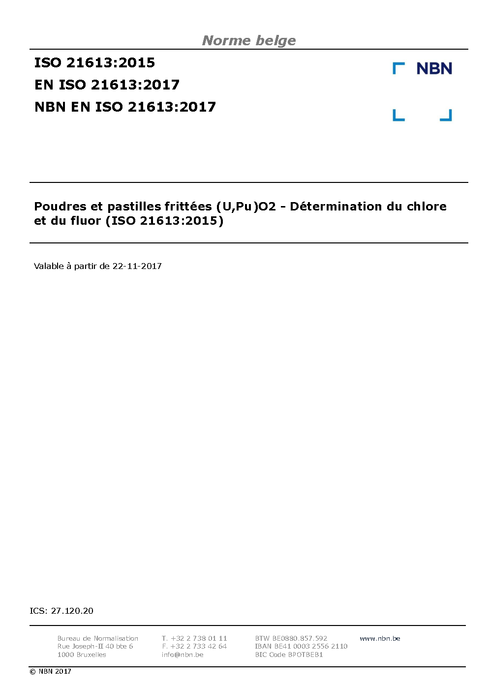 | Publisher | Bureau de Normalisation Belge (NBN) |