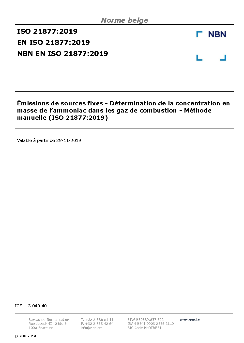 | Publisher | Bureau de Normalisation Belge (NBN) |