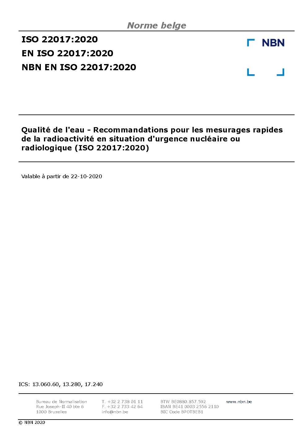 NBN EN ISO 22017:2020