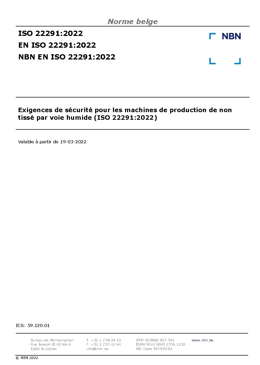 | Publisher | Bureau de Normalisation Belge (NBN) |