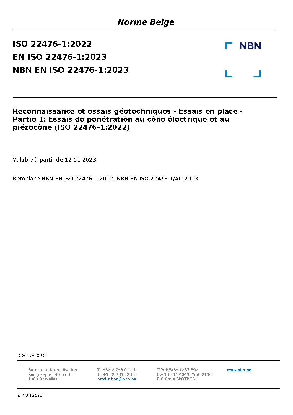 Geotechnical investigation and testing - Field testing - Part 1: Electrical cone and piezocone penetration test (ISO 22476-1:2022)