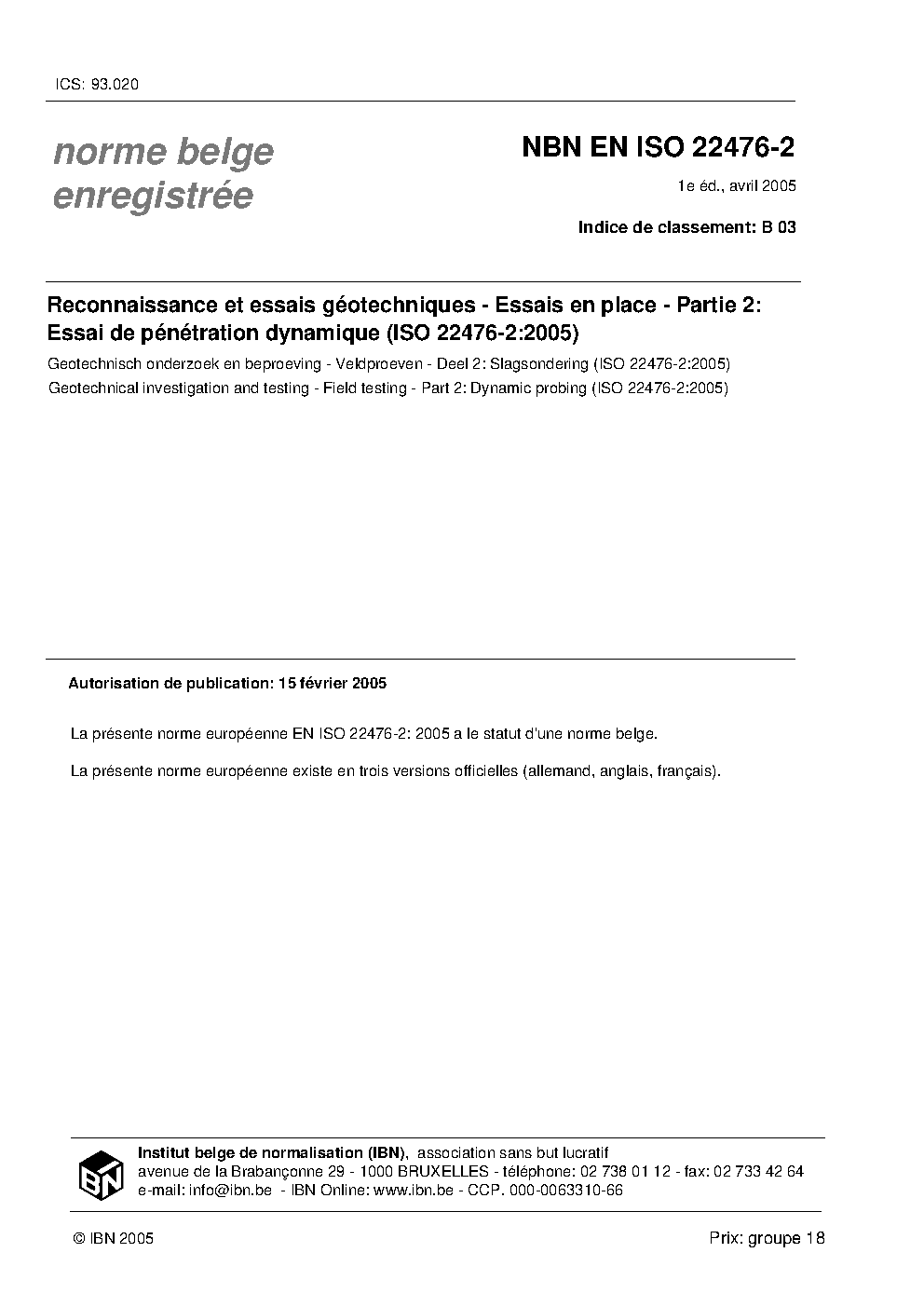 | Publisher | Bureau de Normalisation Belge (NBN) |