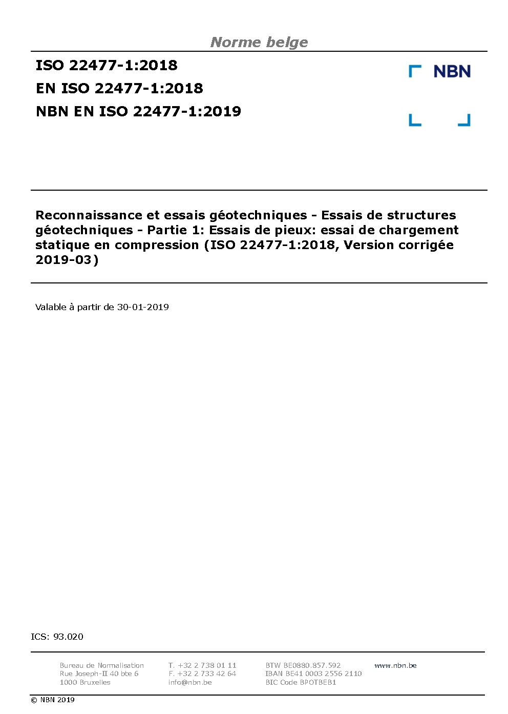 | Publisher | Bureau de Normalisation Belge (NBN) |