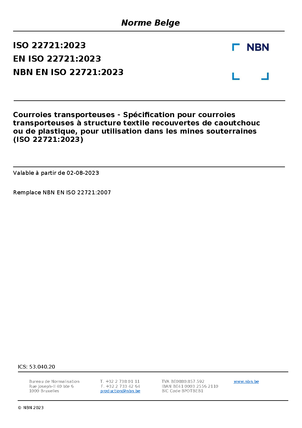 | Publisher | Bureau de Normalisation Belge (NBN) |