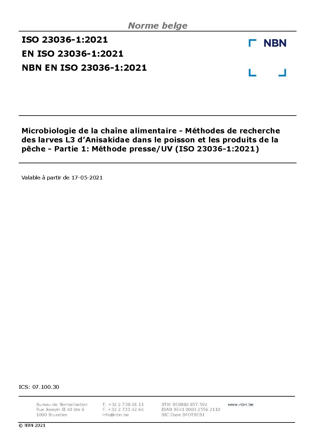 | Publisher | Bureau de Normalisation Belge (NBN) |