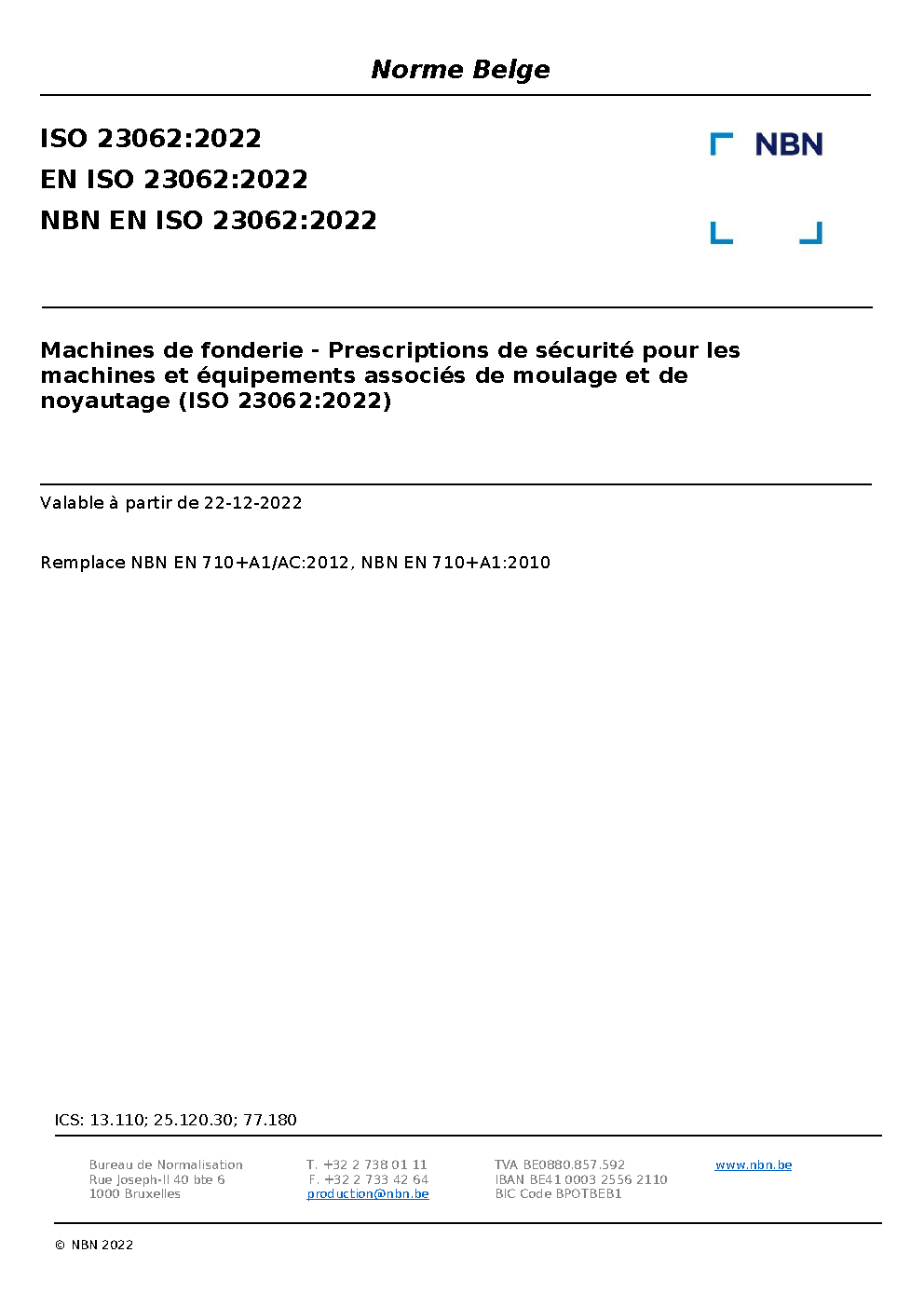 Foundry machinery - Safety requirements for molding and coremaking machinery and associated equipment (ISO 23062:2022)