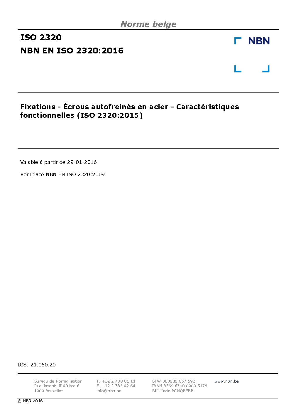 | Publisher | Bureau de Normalisation Belge (NBN) |