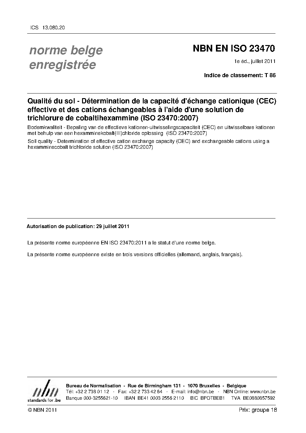 | Publisher | Bureau de Normalisation Belge (NBN) |