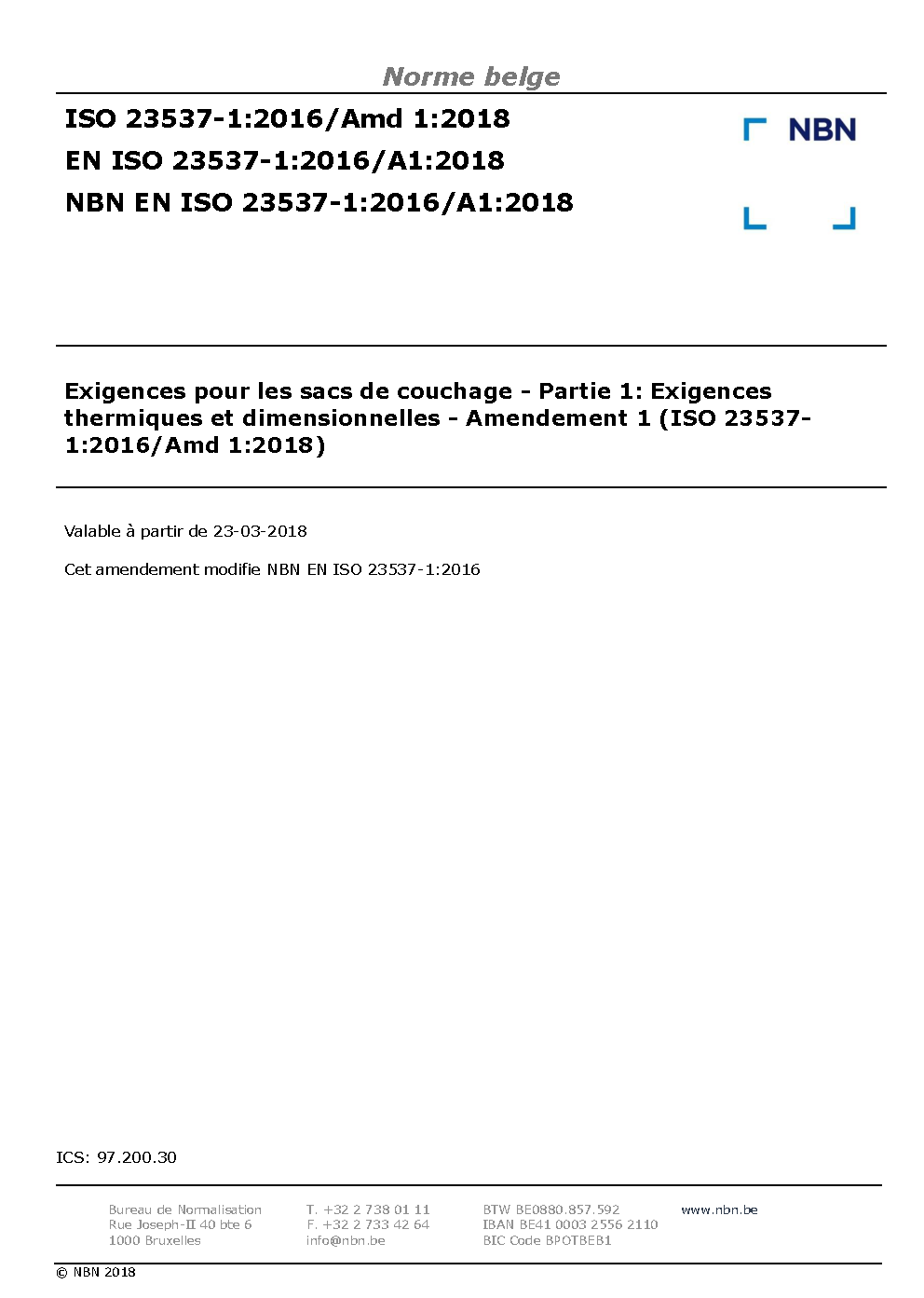 Requirements for sleeping bags - Part 1: Thermal and dimensional requirements - Amendment 1 (ISO 23537-1:2016/Amd 1:2018)