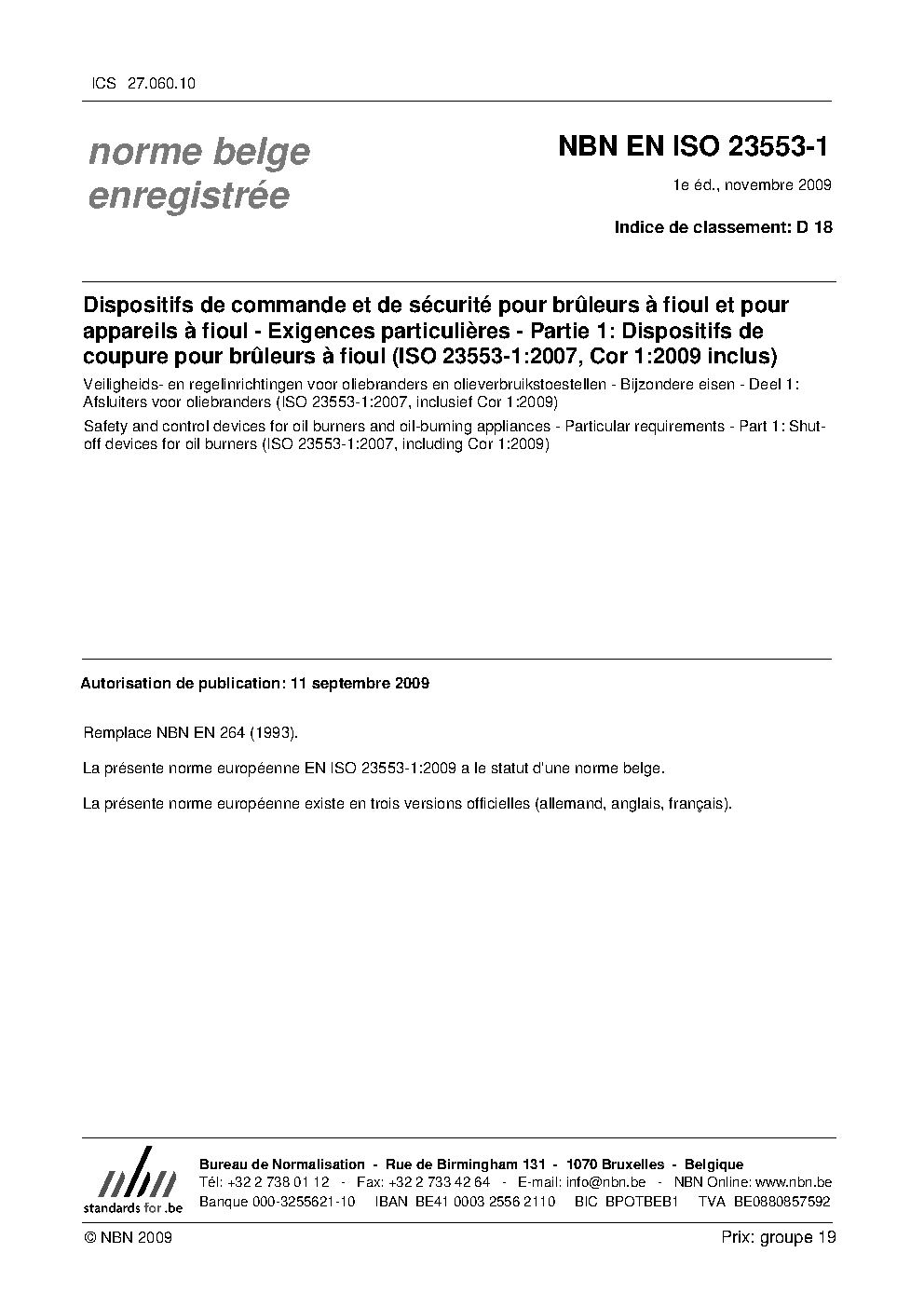 | Publisher | Bureau de Normalisation Belge (NBN) |