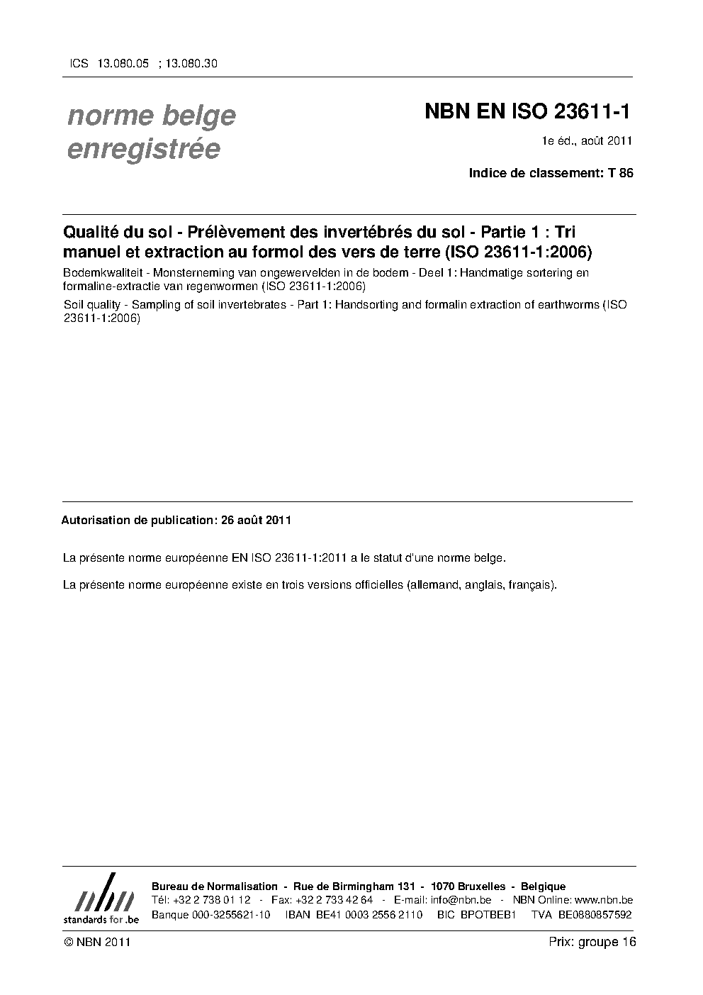 | Publisher | Bureau de Normalisation Belge (NBN) |