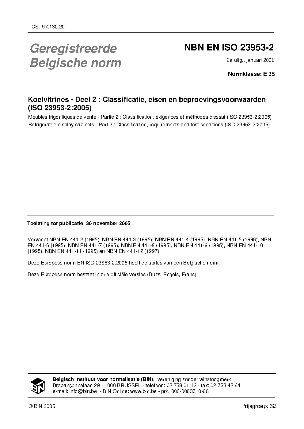| Publisher | Bureau de Normalisation Belge (NBN) |