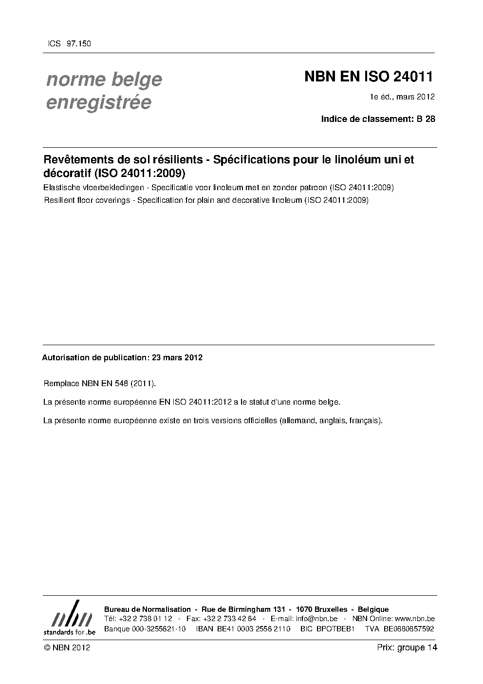 | Publisher | Bureau de Normalisation Belge (NBN) |