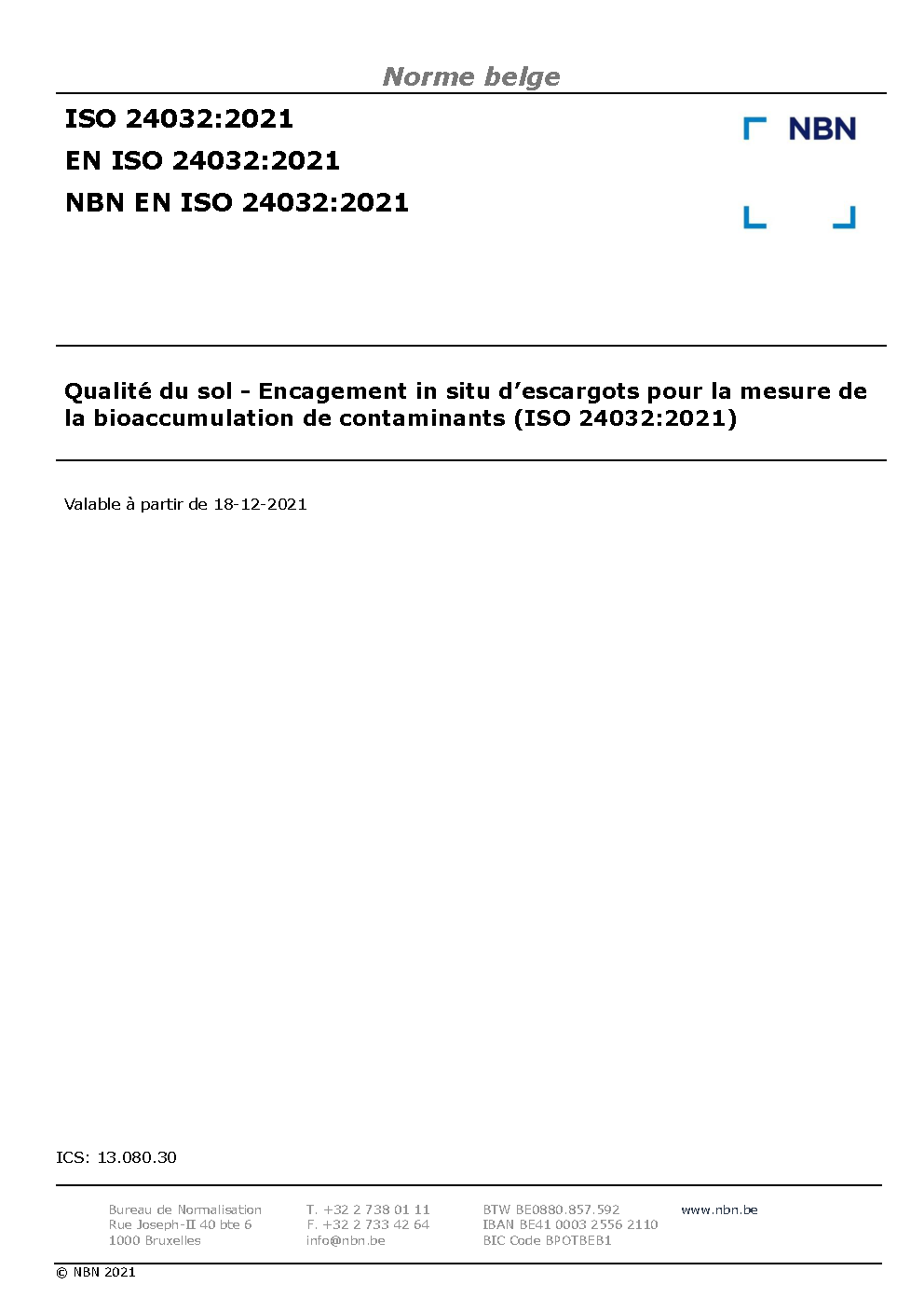 | Publisher | Bureau de Normalisation Belge (NBN) |