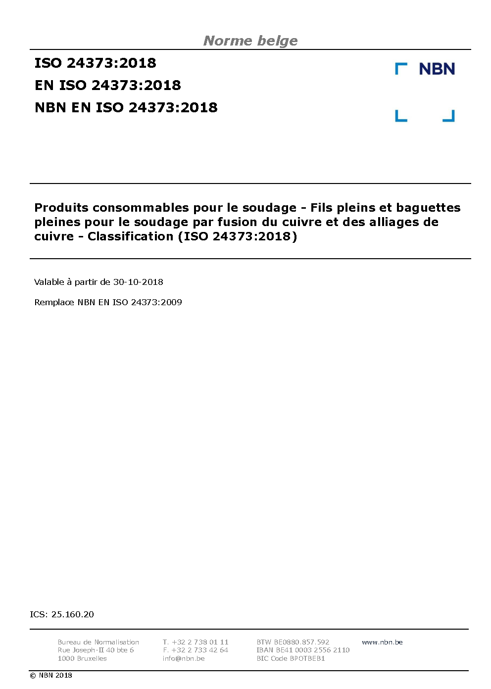 | Publisher | Bureau de Normalisation Belge (NBN) |