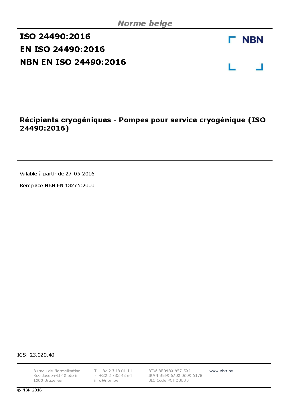 | Publisher | Bureau de Normalisation Belge (NBN) |