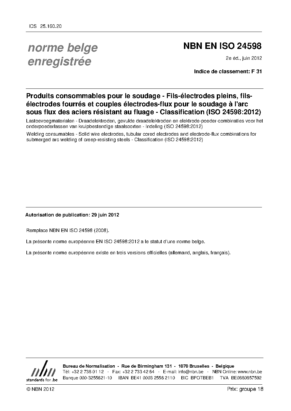 | Publisher | Bureau de Normalisation Belge (NBN) |