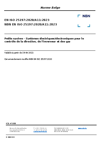 Small craft - Electrical/electronic control systems for steering, shift and throttle (ISO 25197:2012)