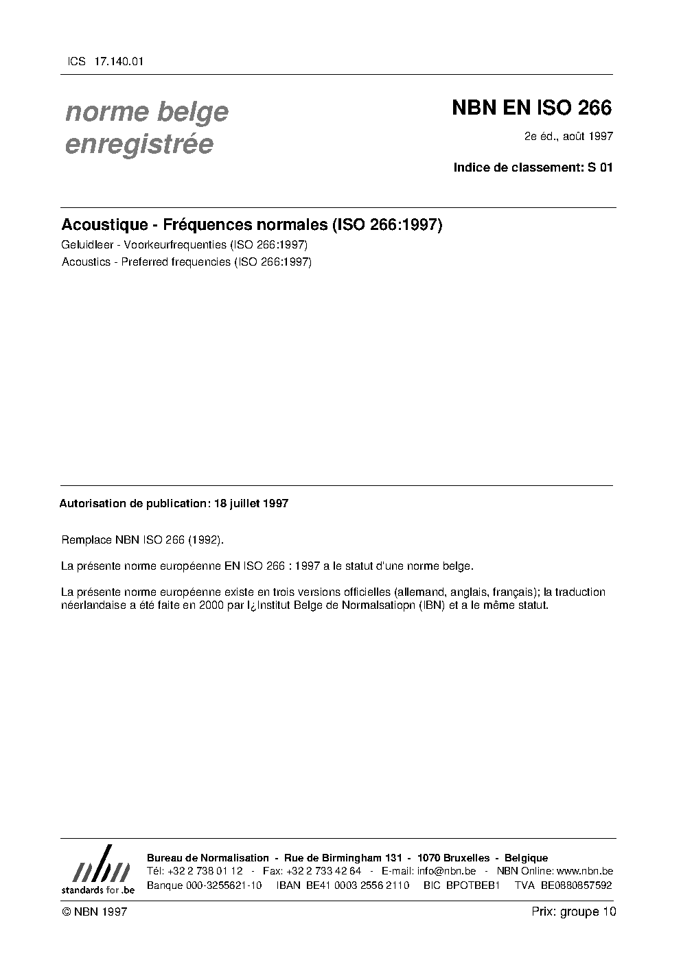 | Publisher | Bureau de Normalisation Belge (NBN) |