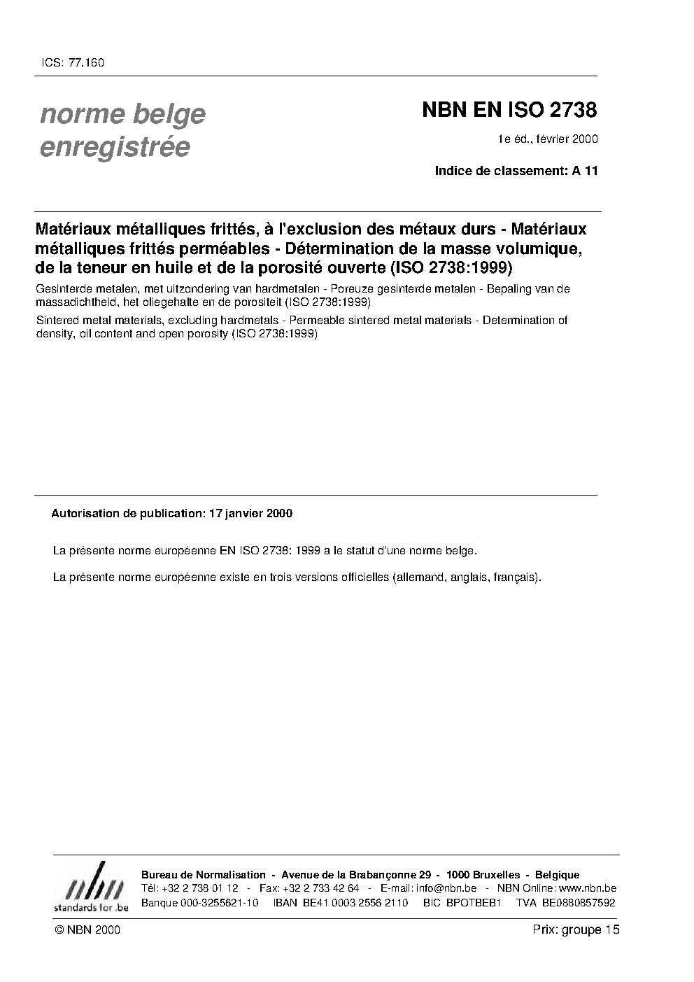 | Publisher | Bureau de Normalisation Belge (NBN) |